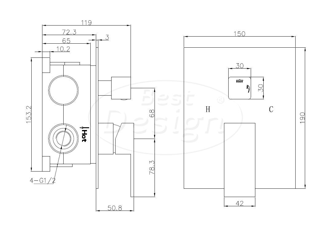 Chrome “Monte” inbouw douchemengkraan + omstel 2 functies incl.Inb box