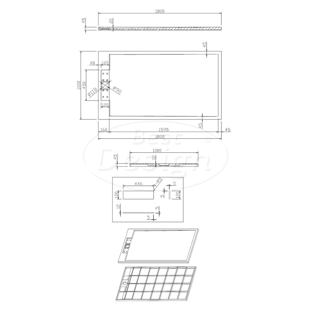 “Decent” douchebak “Just-Solid” 180x100x4,5cm