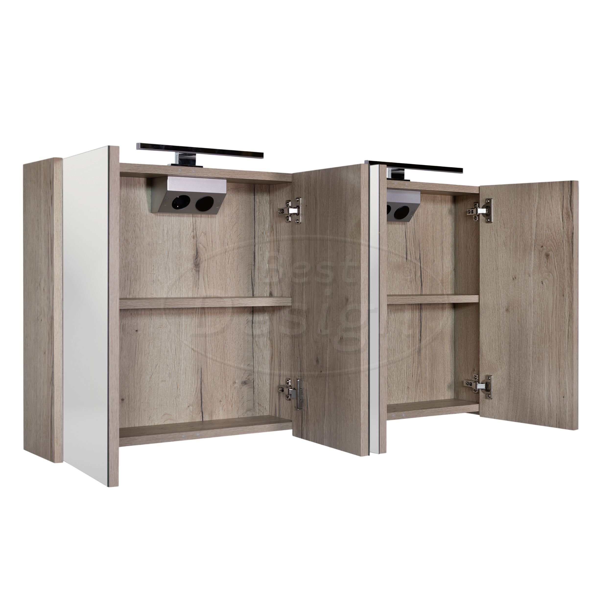 De “Happy-Frosted-Brown” MDF spiegelkast met 2 x verlichting in het formaat 120×60 cm combineert hedendaags design en functionaliteit voor je badkamer. Met een kenmerkende kleur “Frosted Brown” biedt deze kast een unieke esthetiek. Door de vier deuren en een interne plank is er voldoende ruimte om je badkamerbenodigdheden georganiseerd te houden. Met inbegrepen LED sfeerverlichting en een stopcontact biedt deze kast praktische en sfeervolle verlichtingsopties. Geschikt voor badkamers en eenvoudig te monteren aan de wand, past deze spiegelkast goed in eigentijdse badkamerontwerpen. Kortom, de “Happy-Frosted-Brown” MDF spiegelkast met 2 x verlichting in 120×60 cm formaat is een stijlvolle en handige toevoeging die je badkamer een verfijnde uitstraling geeft.