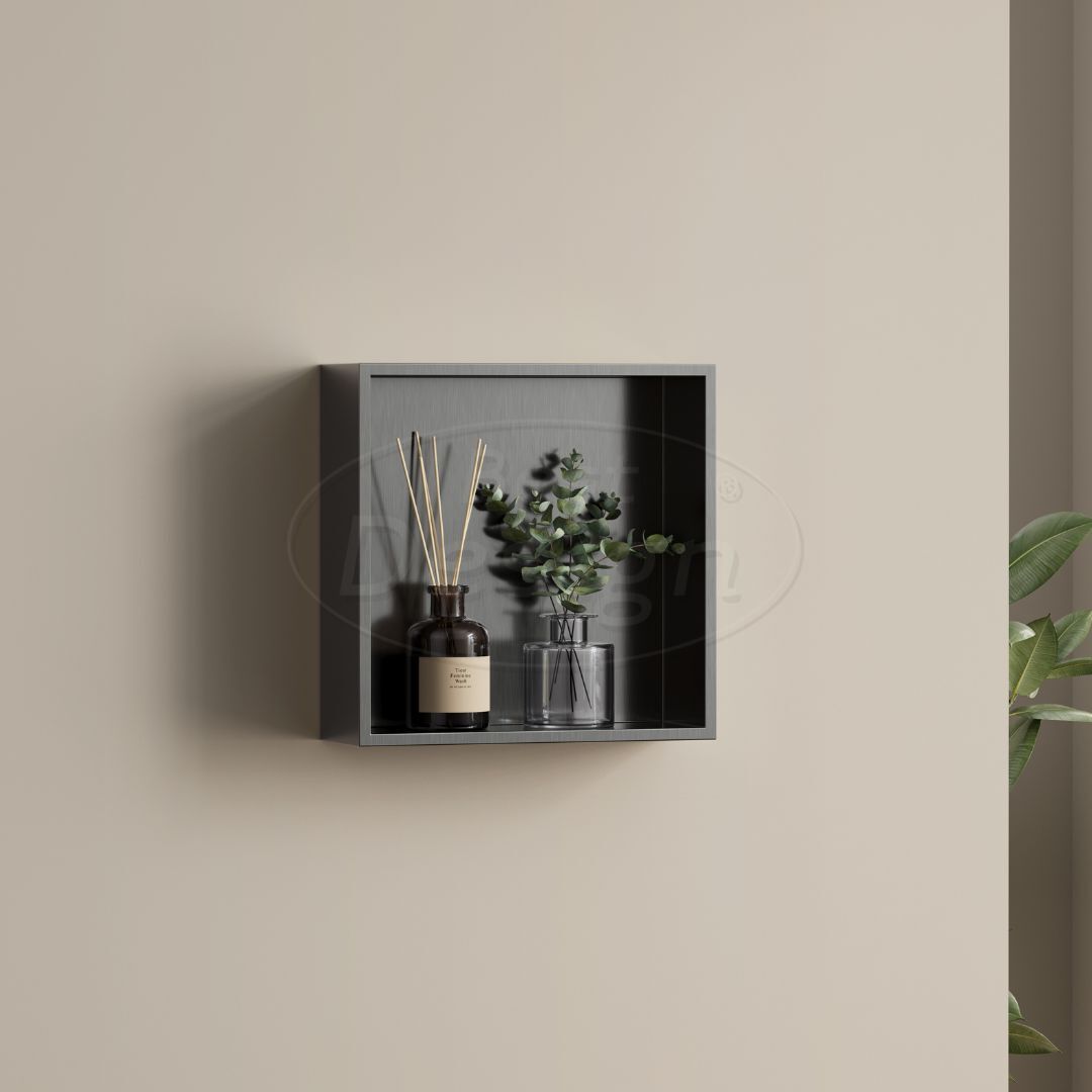 De “Logy” opbouwnis in gunmetal is een stijlvol en functioneel accessoire voor je badkamer of toilet. Met zijn minimalistische vormgeving en matte afwerking voegt deze nis een moderne, elegante touch toe aan elke ruimte. De nis meet 30 x 30 cm, waardoor er voldoende ruimte is voor het opbergen van verzorgingsproducten, douchebenodigdheden of decoratieve items.