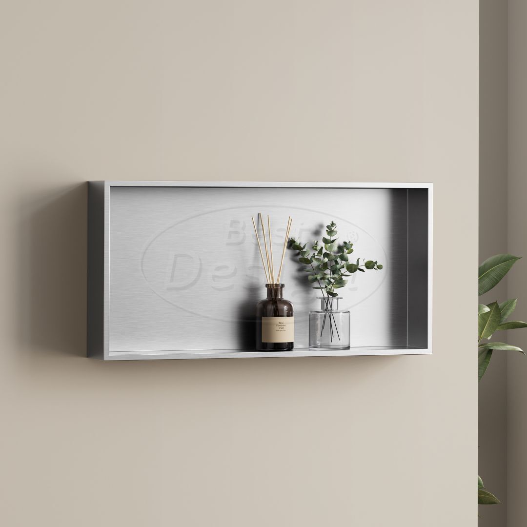 De “Bandy” opbouwnis in RVS is een stijlvol en functioneel accessoire voor je badkamer of toilet. Met zijn strakke lijnen en moderne, matte afwerking voegt deze nis een elegante en eigentijdse uitstraling toe aan je interieur. Dankzij de royale afmeting van 60 x 30 cm biedt de nis volop ruimte voor het opbergen van verzorgingsproducten, douchebenodigdheden of decoratieve items.