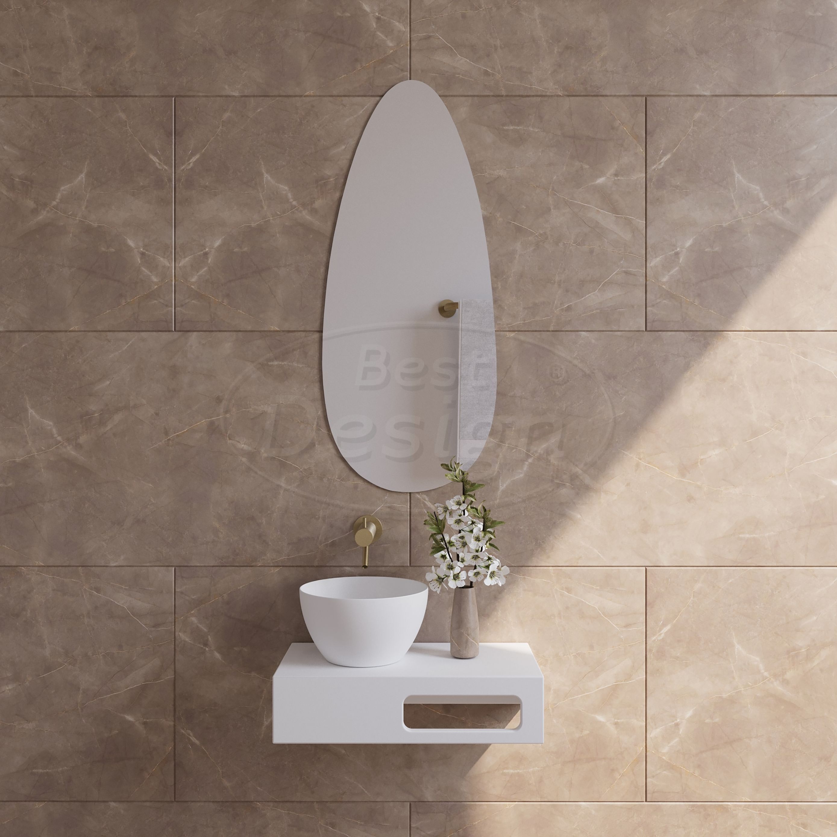 De “Soere” spiegel is een stijlvolle keuze voor kleinere ruimtes zoals het toilet of de hal. Dankzij de ovale vorm en het compacte formaat van 30×70 cm past hij gemakkelijk op smalle wanden. Het randloze ontwerp geeft de spiegel een rustige, verfijnde uitstraling en laat zich eenvoudig combineren met verschillende interieurstijlen. Door zijn lichte en slanke ontwerp is de “Soere” eenvoudig op te hangen en flexibel in gebruik. Een subtiele, maar doordachte toevoeging voor wie houdt van eenvoud met een helder effect.